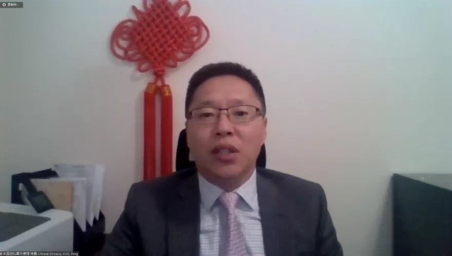 ▲中国驻加拿大大使馆一等秘书肖鹏致辞